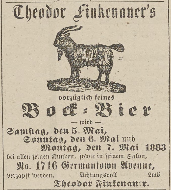Here are some ads for breweries in Philadelphia releasing Bock Beer in the year 1883.